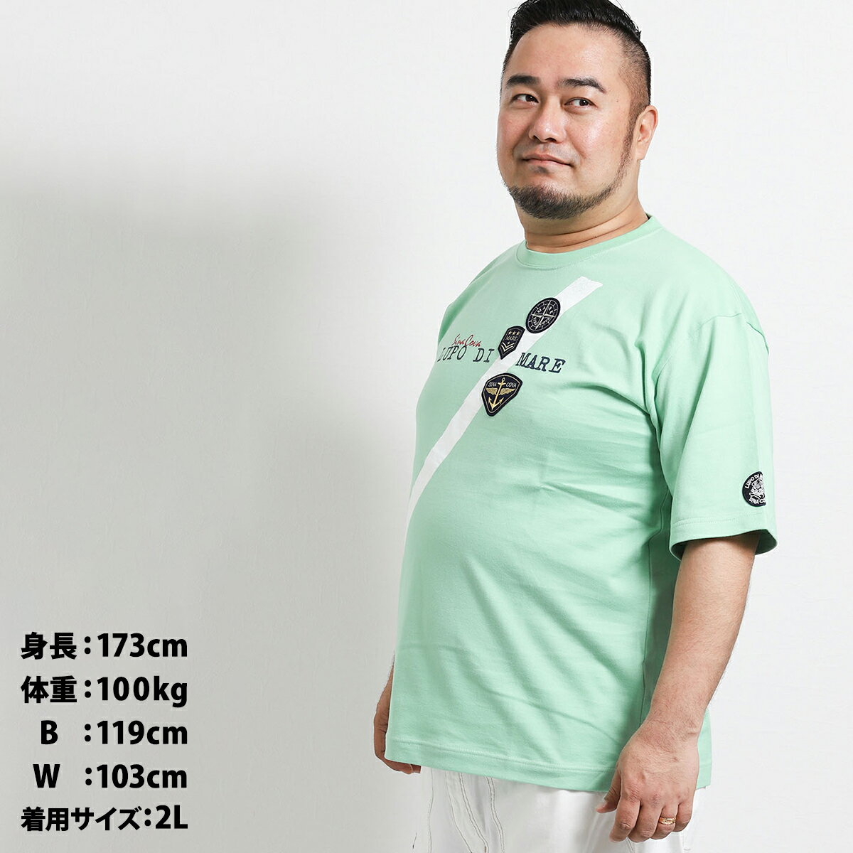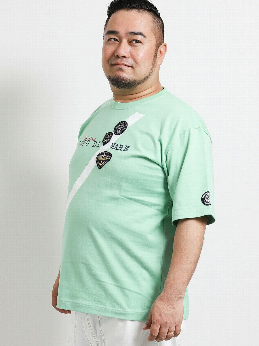 写真カラー上から;(50)緑(75)紺素材;コットン100%シーズン;夏【大きいサイズ】シナコバ/SINA COVA 天竺ワッペン使い クルーネック半袖Tシャツワッペンとロゴをあしらったライン使いのデザインが存在感を引き立てる、クルーネック半袖Tシャツ。
