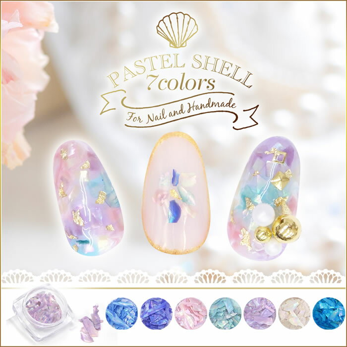 ◎パステルシェルフレーク クラッシュシェル 全7色【パステル シェル レジン 春ネイル 夏ネイル メール便OK】